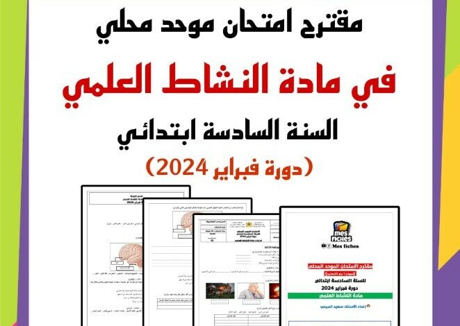 أقدم لكم هذا المقترح لامتحان موحد محلي في مادة النشاط العلمي للسنة السادسة ابتدائي مرفقاً بعناصر الإجابة، والخاص بدورة فبراير 2024.