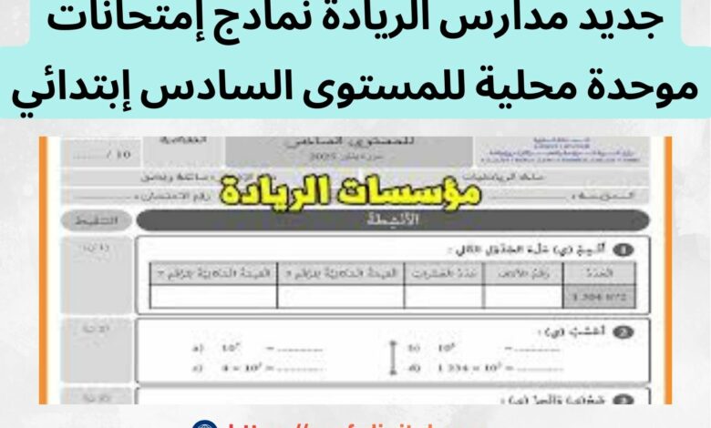 جديد مدارس الريادة نمادج إمتحانات موحدة محلية للمستوى السادس إبتدائي