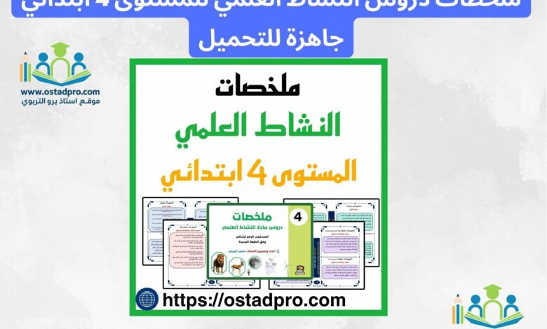 ملخطات دروس النشاط العلمي للمستوى 4 ابتدائي جاهزة للتحميل